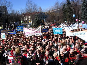 W Polsce mieszka 853 tysiące 723 Krystyn. Wczoraj w Zakopanem swoje imieniny wspólnie świętowało kilkaset z nich. To właśnie pod Tatrami zdecydowały się zorganizować X jubileuszowy Ogólnopolski Zjazd Krystyn. Radosny korowód odzianych w jednakowe kapelusiki i góralskie chusty Krystyn z całej Polski przemaszerował przez centrum Zakopa...